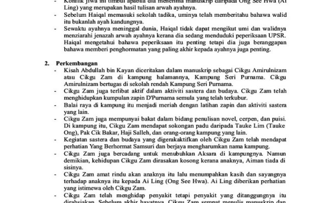 Nota ringkas teknik plot, nilai, gaya bahasa, pengajaran, perwatakan utama & sampingan.